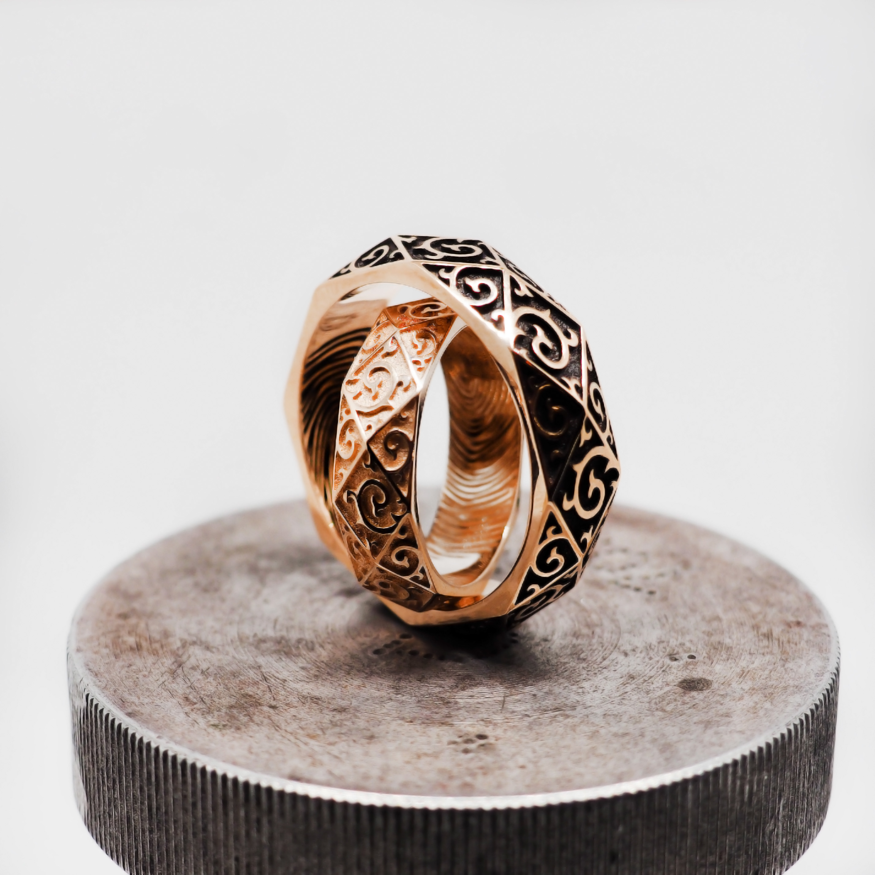 На этом этапе из полученной заготовке придается конечная форма кольца, придается геометрия, создаются декоративные элементы, крепятся камни